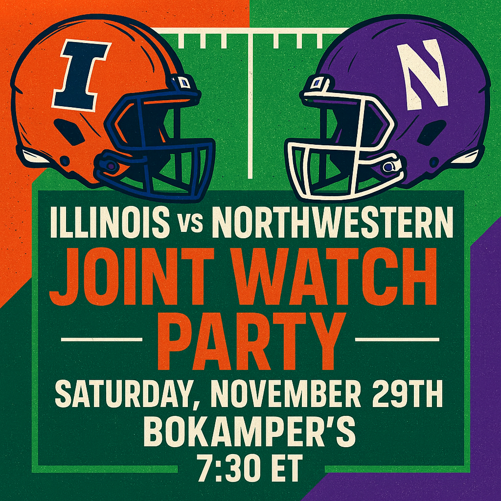 Join us at Bokamper’s as Illinois 🧡💙 and Northwestern 💜🤍 fans come together for the ultimate rivalry!